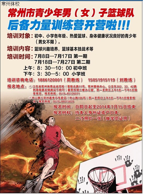常州市青少年男(女)子籃球隊后備力量訓練營開營啦
